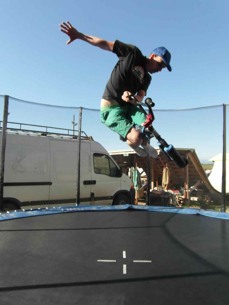Le tour du Tetanos park étant impossible pour moi, je chasse les gosses du trampoline pour tester le Beringer's bike et c'est plutôt rigolo.