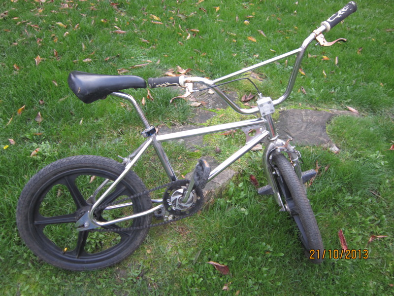 je dirai un cadre raleigh burner des années 80 et la fourche il me semble l'avoir vu dans un bicross mag et montée sur un modèle free de marque LEJEUNE ou V2000 je sais plus mais c'est bien le style V2000 et pour le reste c'est marqué sur les pièces!!!