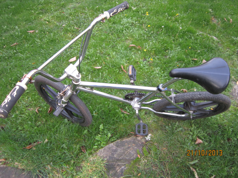.C'est que je refais mes spads pour mes kids mais l'idée de remonter un peu dessus me titille...Etant donné la taille de mes guiboles le tube de selle coudé s'impose à moi.Faudra retrouver un cadre mais je sais pas trop quoi,ptèt un flat pour changer.Ce que je sais c'est que ma femme n'appreciera pas elle me croit touché par un virus type BMX Old School très contagieux et néfaste au budget.Ce qui me sauve un peu c'est que je dis que c'est pour les enfants mais 6 spads pour 2 enfants ca commence à faire louche...Que ceux qui souffrent du meme mal me soutiennent.