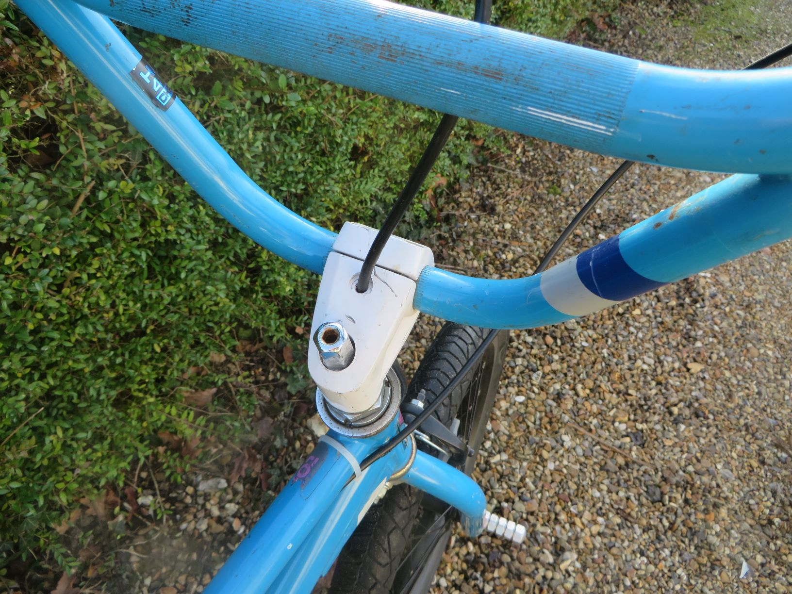 je voulais vous présenter ma nouvelle acquisition et recueillir vos avis et conseils. J'ai craqué pour ce vélo à deux rues de chez moi. Je connaissais rien à V2000, j'ai fouiné un peu pour me faire une idée. Je l'ai acheté à son premier proprio. Il l'a en partie ré-équipé avec du moderne: roues, freins, grips et selle. Les stickers paraissent incomplet et en sale état. J'ai eu une board de sticker Haro Freestyler pour le resticker mais je trouve ça dommage. Au fond ça sera jamais un Haro et les stickers roses de V2000 sont bien plus fun dans un délire retro. J'ai sursauté en voyant les pegs mais ce ne sont pas des Skyway. Si quelqu'un à des infos sur ce modèle ou même des plans pour des stickers, ou juste des idées ou des conseils de rénovation…