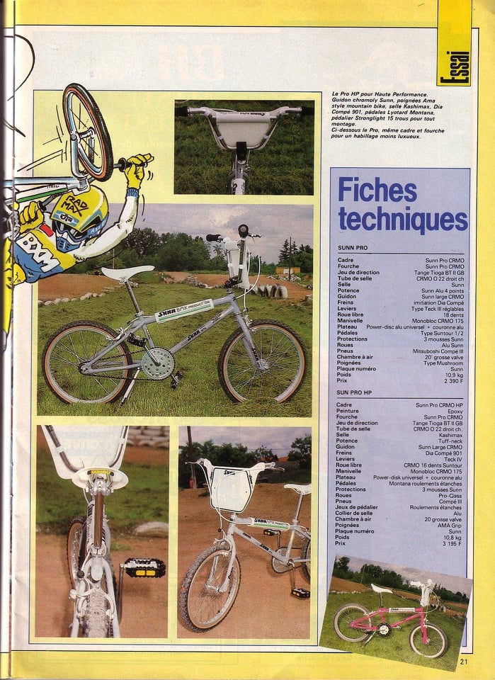Du côté marketing, Sunn était une marque bien Française et les colories étaient vraiment sympa. Les tenues des pilotes "usine" étaient toujours trés cool (le pantalon vert émeraude, il fallait oser!). Néanmoins, Sunn était vraiment une marque fortement marqué "Gars du Sud", et en IDF ou même dans la moitié nord de la France (le grand nord voire limite cercle arctique!), il n'y en avait pas non plus des masses sur les pistes, sauf les versions mini pour les minots, ou pour quelques pilotes d'usine ou aidés par Commençal.