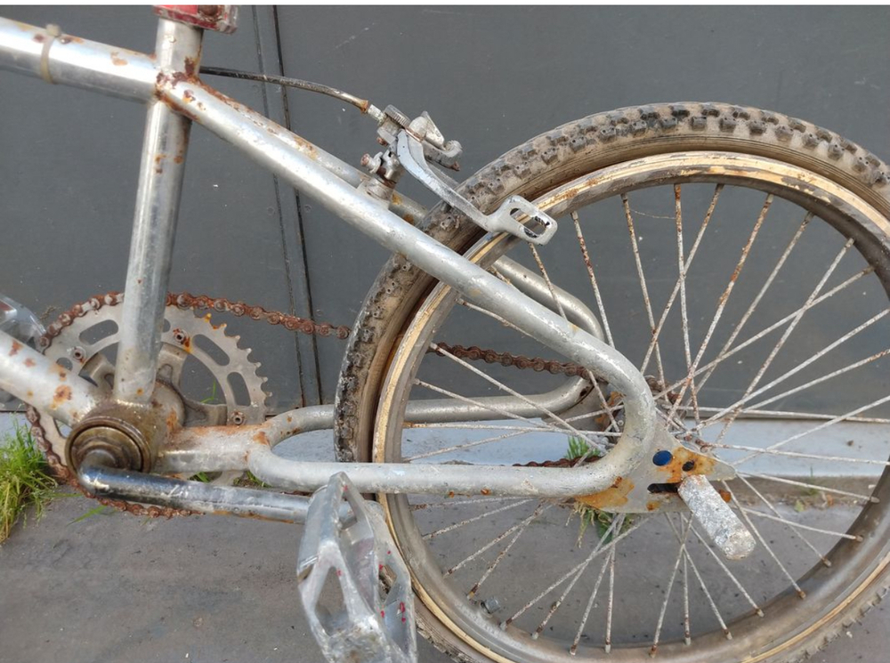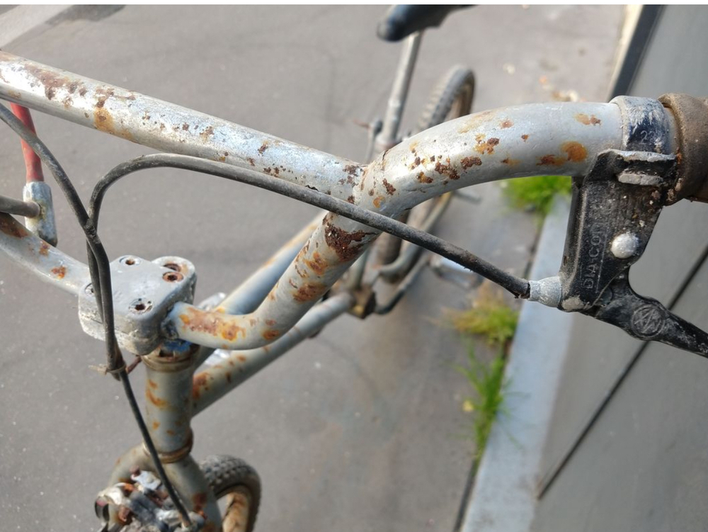 Alors le velo a ete repeind a la bombe ! (D ou cette couleur ....) donc avant le bain j ai commence a enlever la peinture avec un dissolvant ...