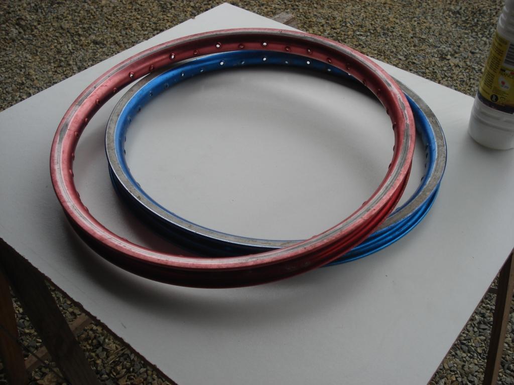 Avant le bain Après trempage/rinçage Après polissage d'une jante Photo des 3 étapes