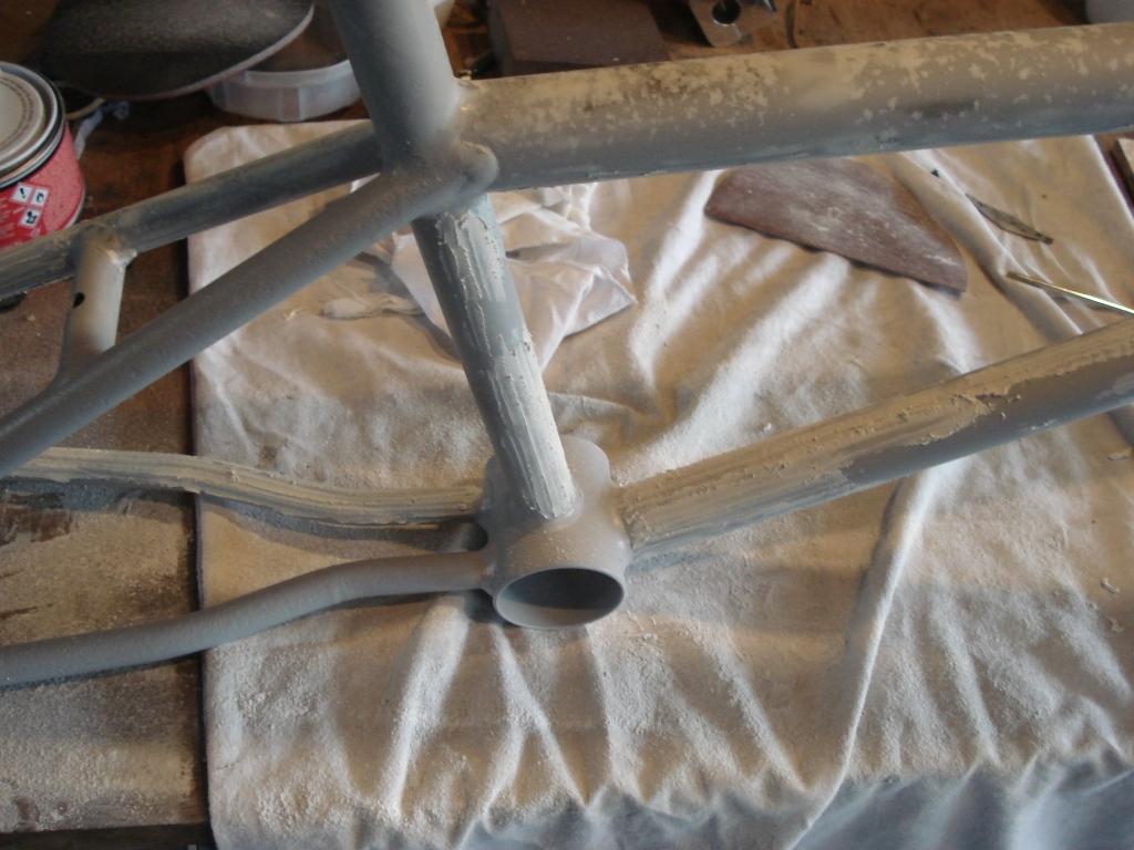 Je m'y suis remis le WE dernier, 10 heures à enduire et poncer (et oui, vu l'état, l'apprêt garnissant ne suffisait pas, et je ne voulais pas charger avec plusieurs couches, afin de garder le relief des soudures après peinture).