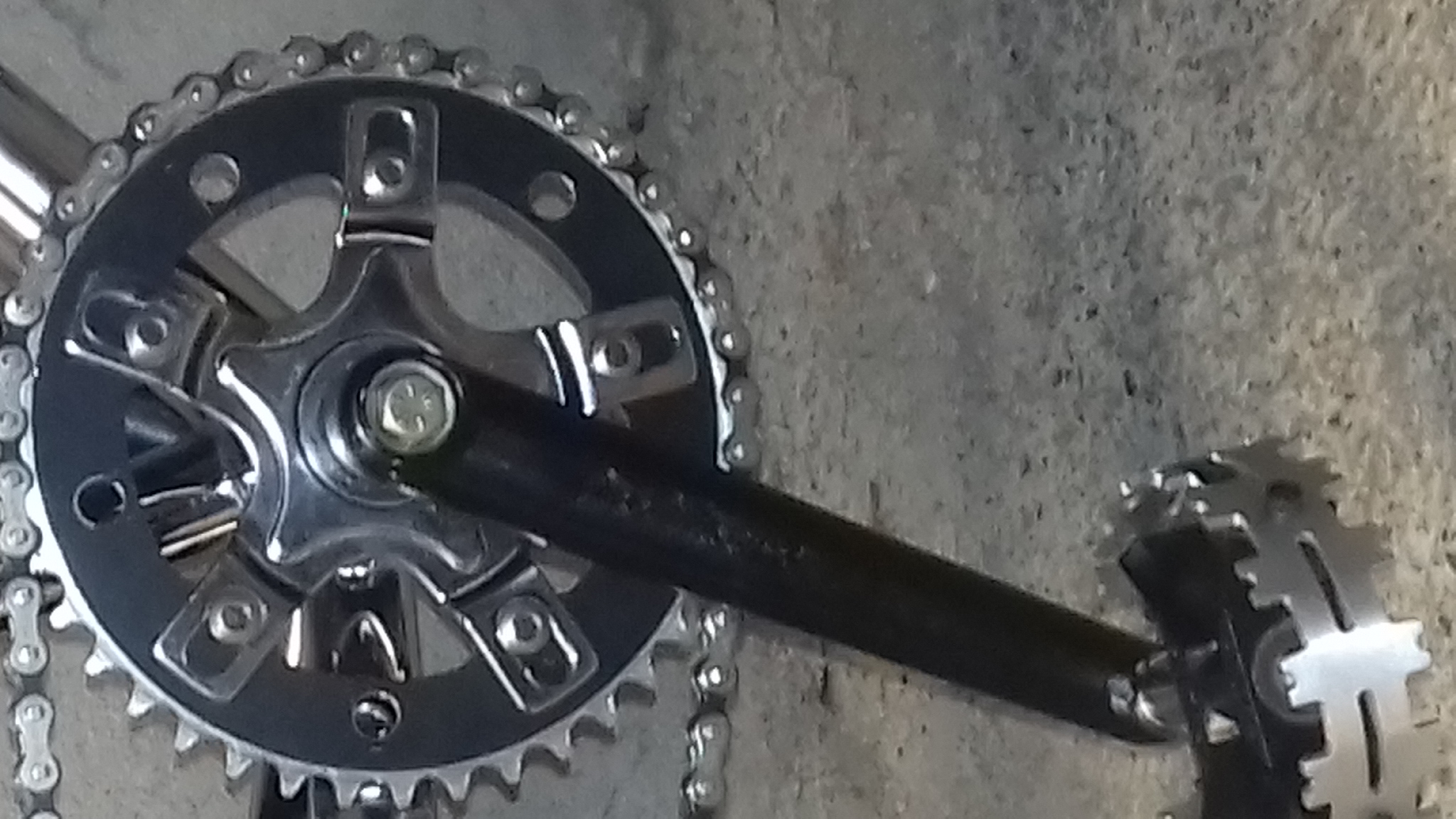 :bye: des nouvelles du sunn, sablage,apprêt et peinture noir satiné des corps de pédales hutch.Roue libre acs 18t,chaine izumi black/silver :bye: