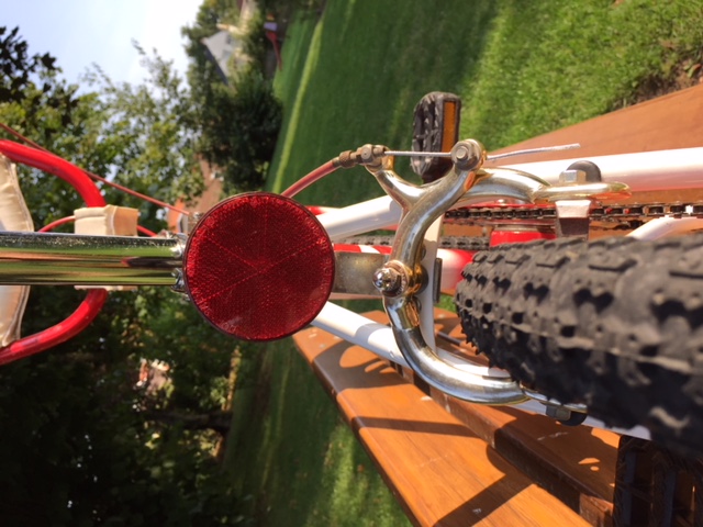 Mais le Chrome Burner est déjà presque prêt, j’ai le guidon, les grips ( Tange ), l’étrier de frein ( Un Weinmann rouge à l’arrière uniquement ), le levier ( Un Dia-Compe ), les Jantes ( Des Simplex ), les cables de frein, de la gaîne rouge, des pneus style Comp III ( Comme sur le Extra ). Après, j’ai pas de beau pédalier ( Je cherche un Sugino ou un qui ressemble ) mais j’en ai un pas trop moche, il faudra regarder...