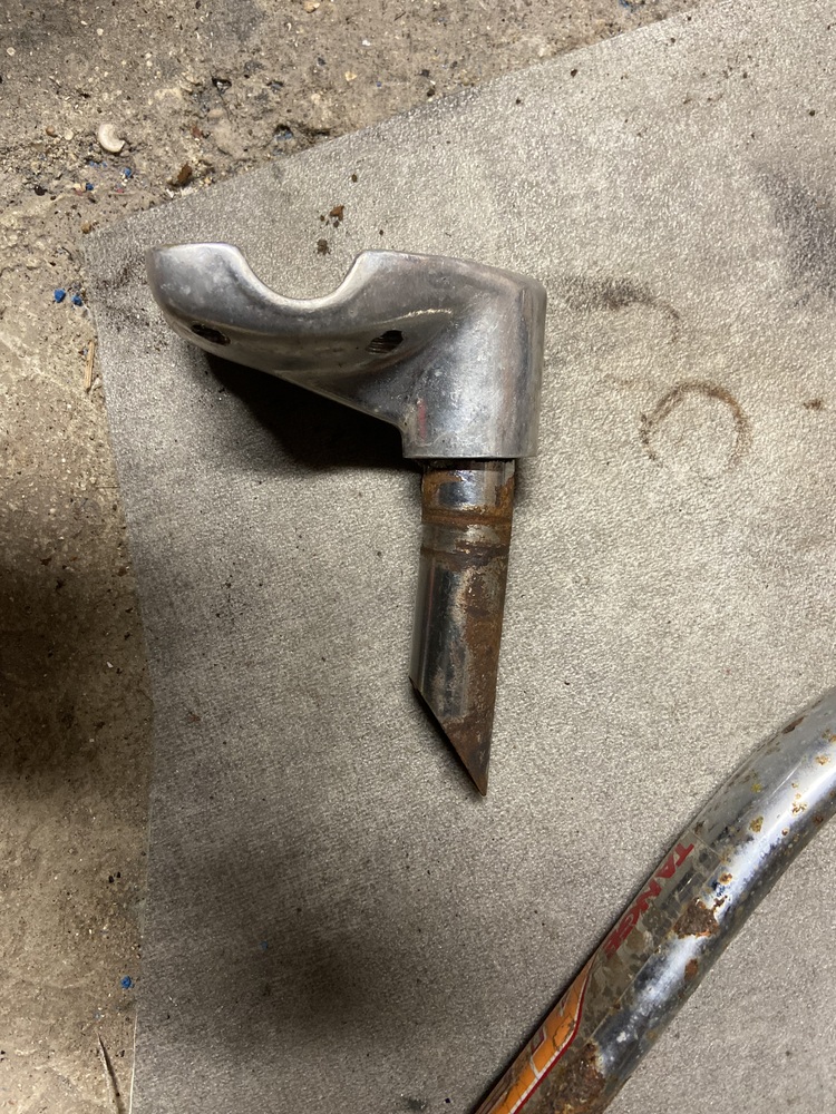 Premier démontage et finalement des dégâts, rouillé surabondante, potence tordue, cuvettes et roulements de pédaliers hs, etc…