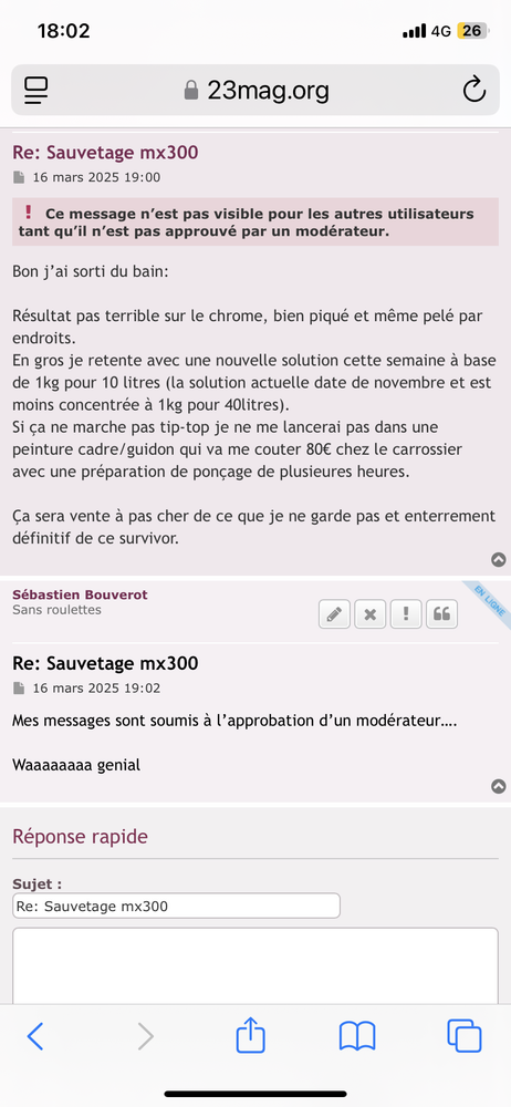 Mes messages sont soumis à l’approbation d’un modérateur….