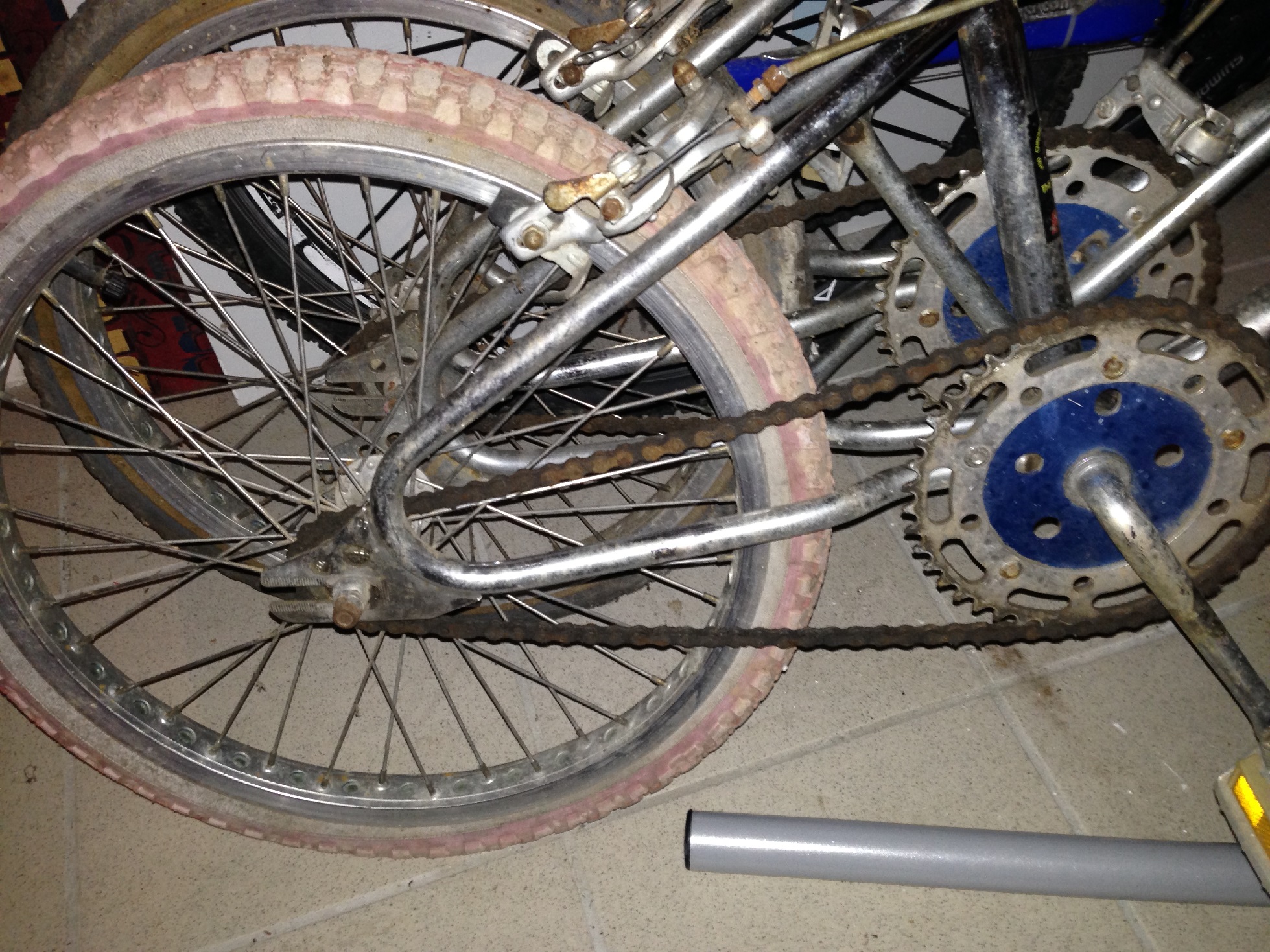 Extérieur cadre et fourche, pour finition léger passage de laine d'acier 000 imbibée de Rustol Polytrol puis chiffon pour faire briller