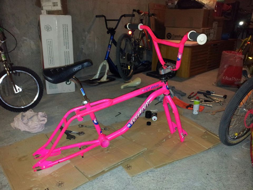 J'ai toujours voulu re-rouler un Pro Freestyle Tour car je gardais un souvenir ému de mon dernier bike avant de raccrocher vers 90. Un PFTde 88 full chrome avec un pédalier Fusion. Il est depuis réapparu en Avignon en ce début d'année par le biais de mon pote Wladimir qui l'avait récupéré à l'époque et l'a conservé toutes ces années mais peut-être qu'on aura l'occasion de revenir sur ce spad un peu plus tard... Bref, c'est en mode souvenir ému que je me mets en quête d'un cadre et fourche. Je finis par le trouver pas trop cher sur Ebay US (520$) fin 2012