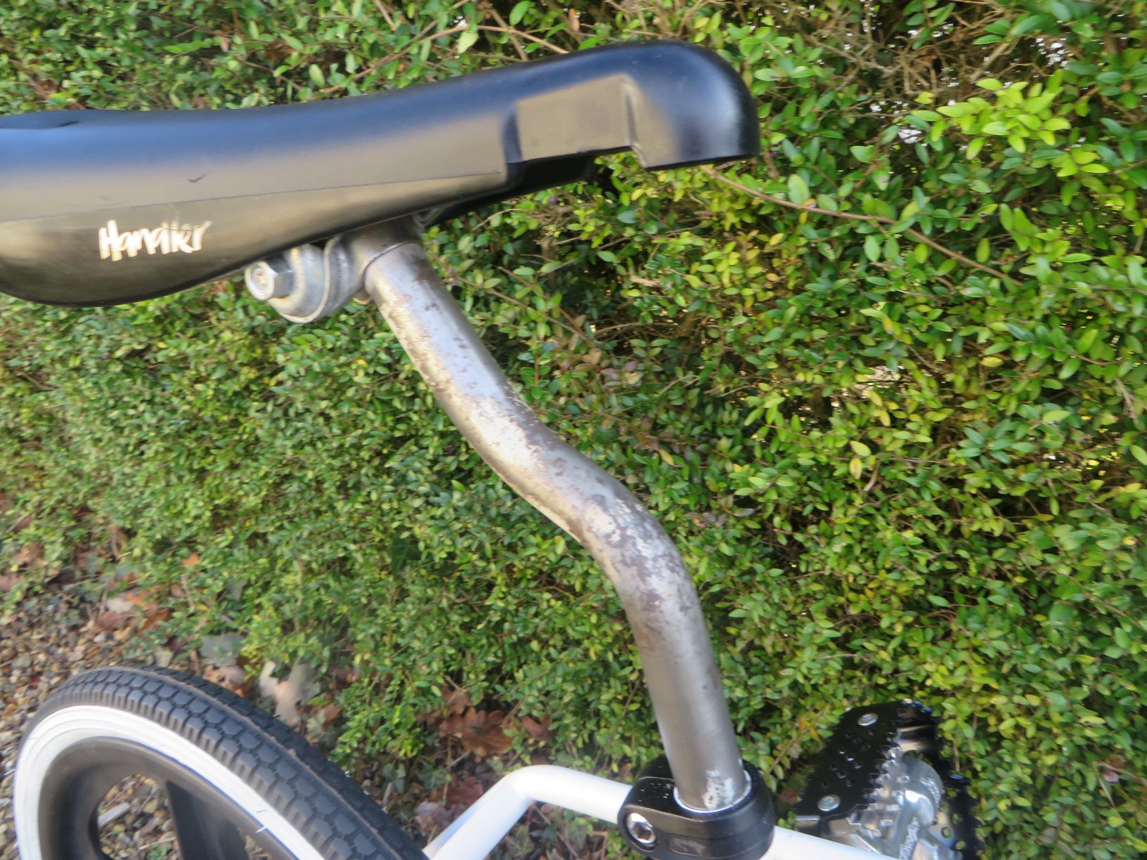 Dans le thème niqué aussi, quelqu'un va finir par se blesser avec cette tige de selle effectivement, elle est plus ployée entre les premières photos et cette dernière là (j'exagère ou pas ?). Coupe la donc et ne conserve que la partie droite, mais à insérer au moins sur 5 cm dans le tube de selle du cadre