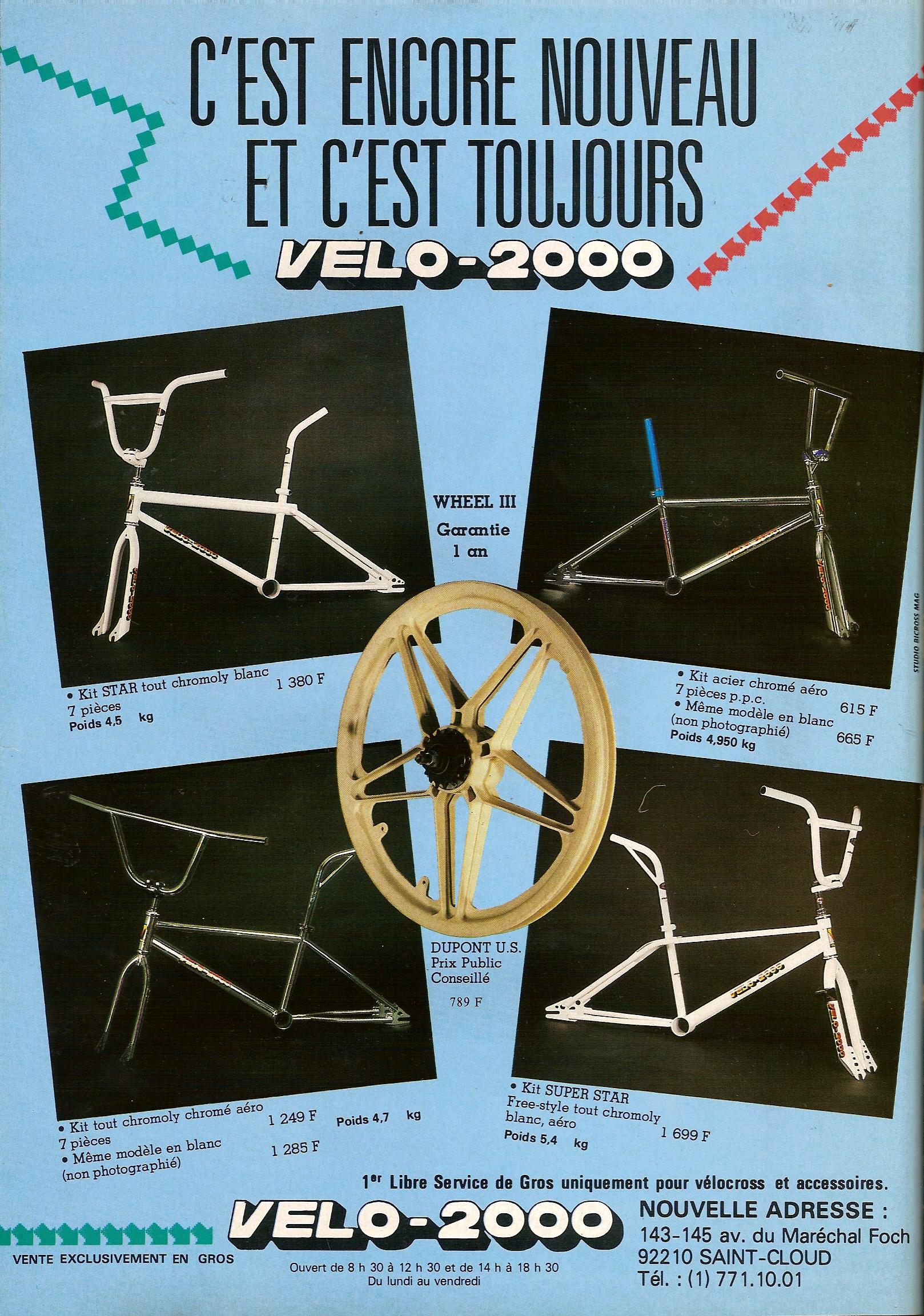 J'ai commencé le bicross dans les années 80 sur un vélo 2000, je viens de trouver et d'acheter un cade et fourche V2000.