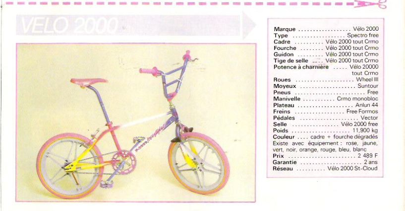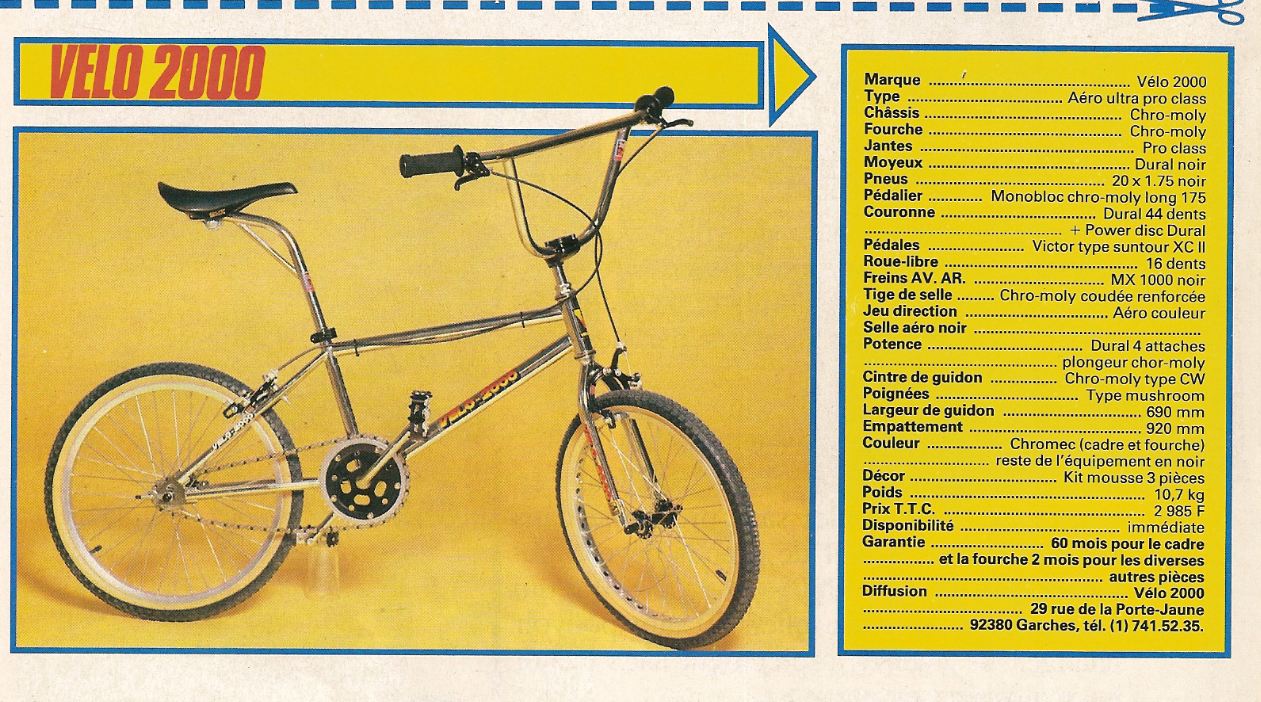 J'ai commencé le bicross dans les années 80 sur un vélo 2000, je viens de trouver et d'acheter un cade et fourche V2000.