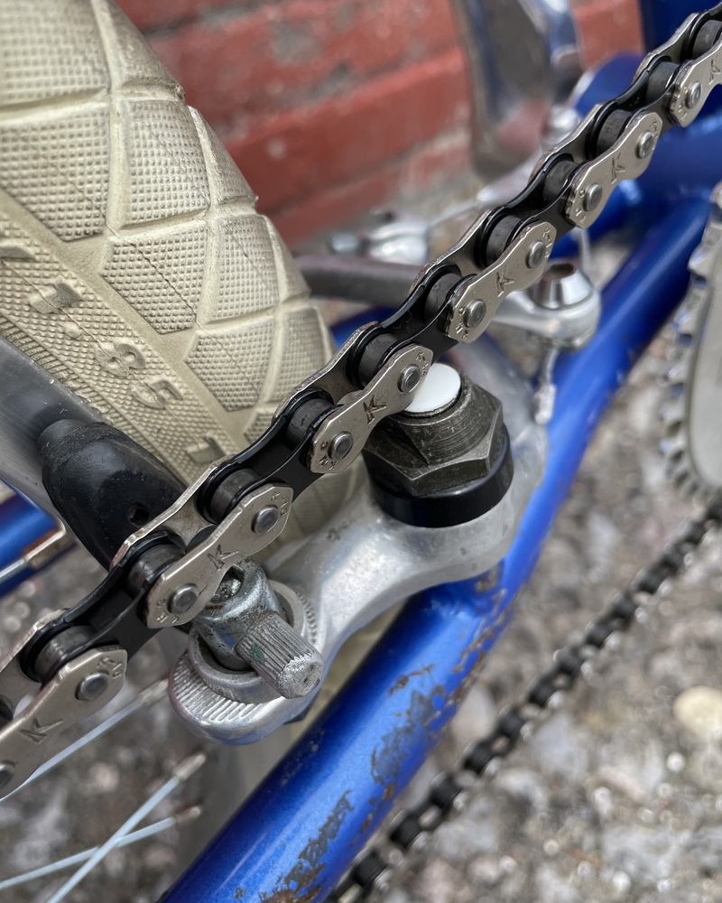 Oh oui, l'extrémité du câble en plastique est venue sur le câble. Le câble n'est pas très rigide donc je l'ai laissé. J'ai enlevé la section métallique d'une vieille tige de freestyle, cela aide à garder le câble droit à travers la tige et empêchera l'extérieur du câble de se fissurer car il ne devrait pas trop se plier.