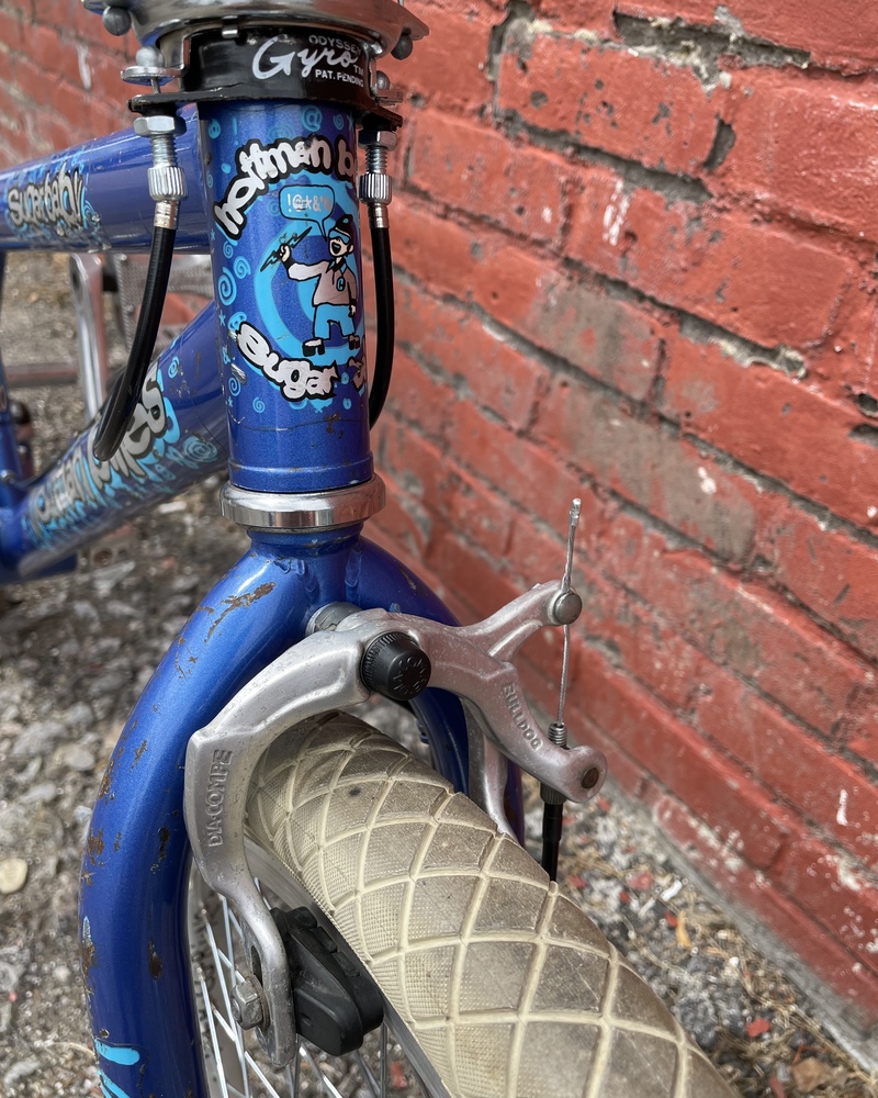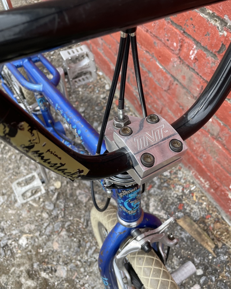 Oh oui, l'extrémité du câble en plastique est venue sur le câble. Le câble n'est pas très rigide donc je l'ai laissé. J'ai enlevé la section métallique d'une vieille tige de freestyle, cela aide à garder le câble droit à travers la tige et empêchera l'extérieur du câble de se fissurer car il ne devrait pas trop se plier.