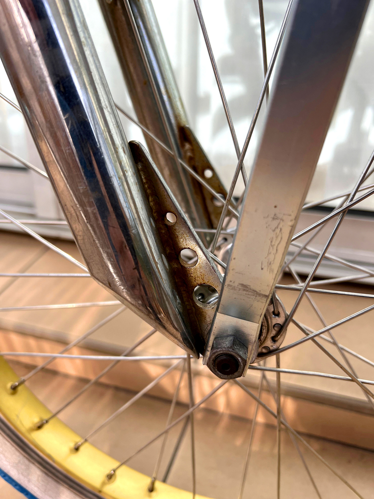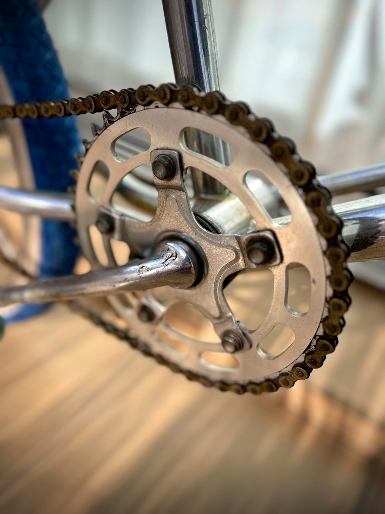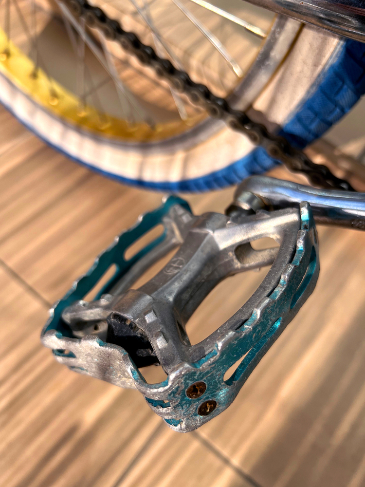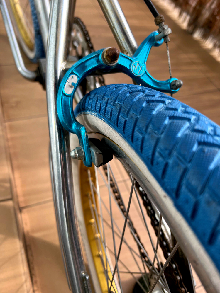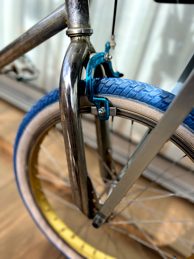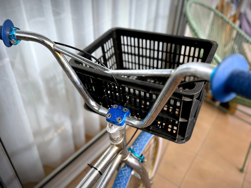 Pour cause de double emploi, j'ai décidé aujourd'hui de me séparer de mon SE Racing Henderson Hauler. Et plutôt que d'attaquer directement sur LeBonCoin ou Ebay, je pensais le présenter à des vrais connaisseurs pensant qu'il y aurait sans doute des personnes intéressées. Le vélo est dans son jus... j'ai beaucoup roulé avec. J'adore sa géométrie. Il est très 'rapide'. Il a sillonné les rues de Tokyo et de Paris. Je l'ai fait révisé il y a 3 ans. C'est vraiment du OG : du Made in Taiwan avec le cadre Chrome 4130 et sa fameuse fourche 'Landing Gear'; les pédales, étriers MX et potence SR anodisés bleu, le pédalier Sugino made in Japan. Les bonus ( essentiellement ajoutés à Tokyo par mon amis Hideaki de Screamin Wheels ) : selle Kashimax, guidon V-Bar, barres de panier ( ET style ! ). J'ai remis des pneus ( très peu roulé depuis ) Gumwall et des jolies poignées bleues AME originales. Jantes : Araya, made in Japan.