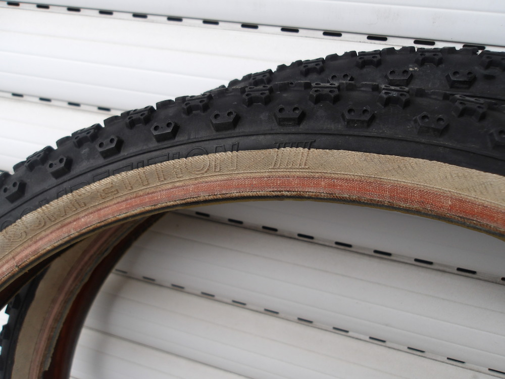 y'a du crampon dessus, ils sont pas lisses (quant à rider avec des pneus de 30 ans....chacun fait ce qu'il veut 😉 mais c'est mieux pour sur show bike je pense )