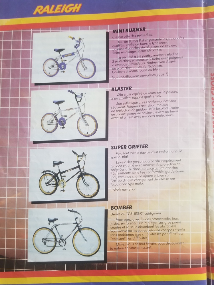 Raleigh Super Tuff Burner MKII, GT interceptor, MBK cherry picker, MBK fun styler, HARO Group1 RS1, Skyway TA, HARO master...