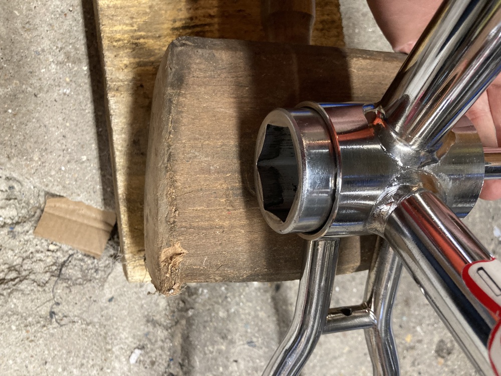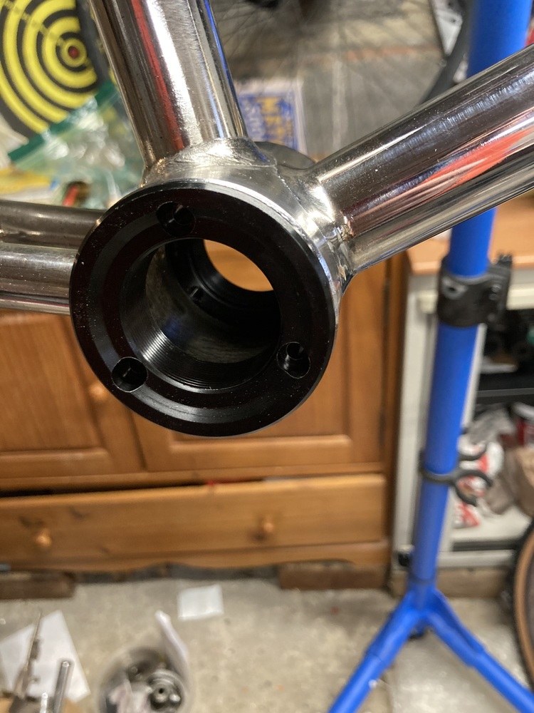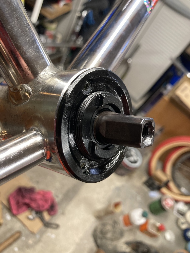 Du coup ça passe pour le serrage mais le sens de rotation du pédalier est le même que le sens de deserrage du boîtier….pas top, soit je passe tout au frein filet, soit je trouve un axe en 127mm.