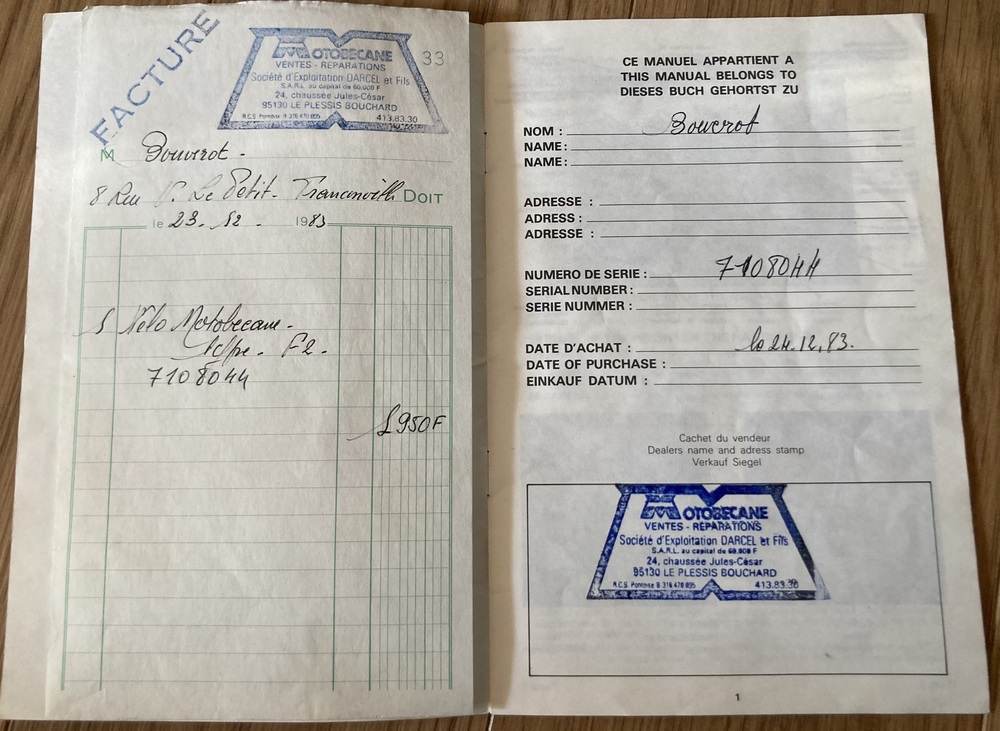 Et puis j’ai retrouvé le carnet et la facture d’achat.