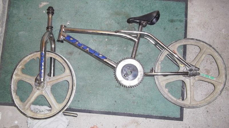 DYNO Detour de 1997 complet mais démonté actuellement, avec rotor Gyro, pédales et collier de selle GT, Dia Compe Bulldog à l'avant, et acheté avec une paire de copie de Tuff fabriquées par Grand Harvest Plastic Co.