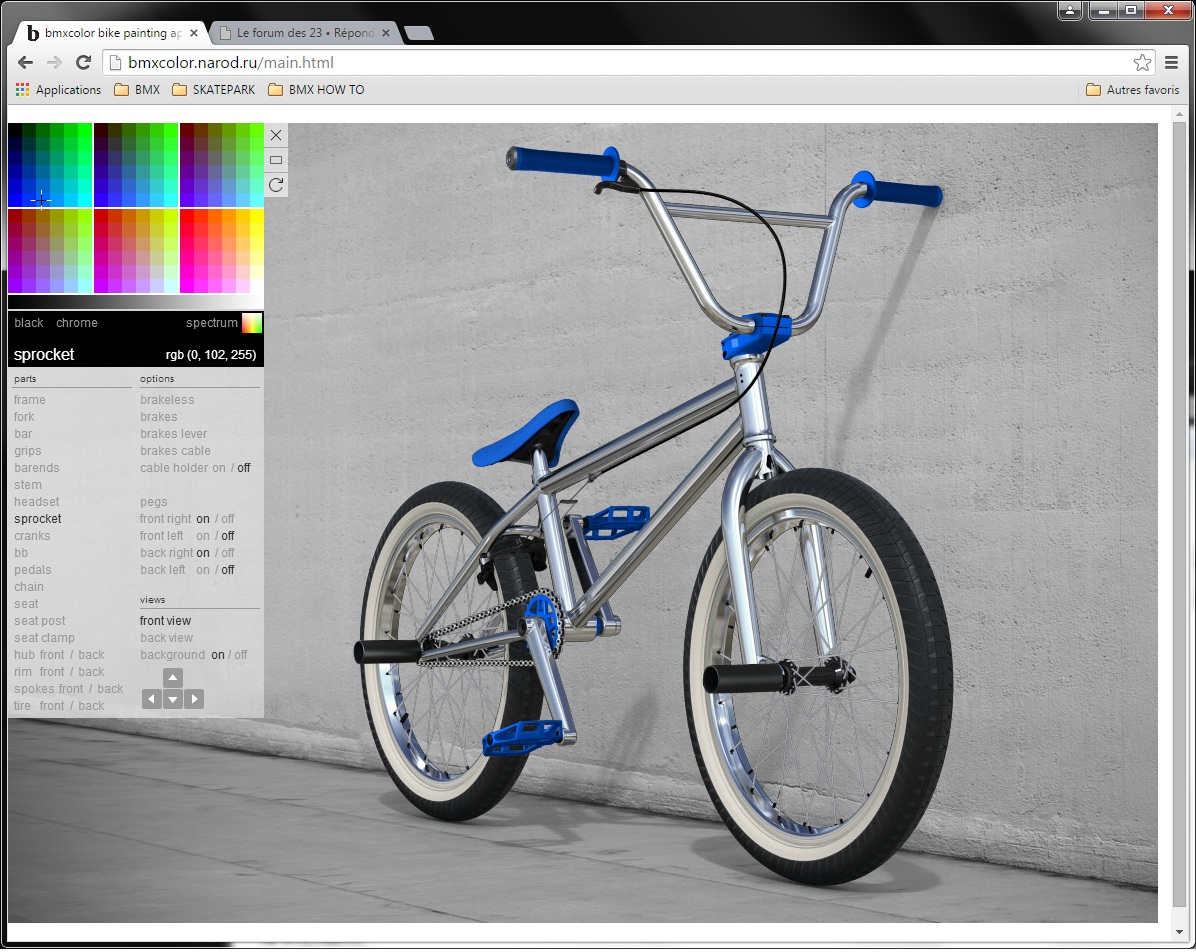 Dans la parution d'un groupe FB, je viens de découvrir un simulateur de choix de coloris pour un BMX.