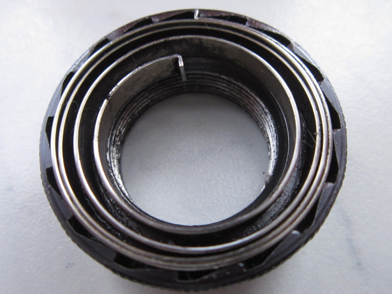 Non tout simple tu vissais la cuvette sur ta fourche , et tu plaçais le ressort dans la cuvette , la pointe de celui çi dans la fente du pas de vis de ta fourche . Ce qui donnais une pression sur la cuvette donc elle ne se desserrais pas ! Il s'agit du fournisseur Japonnais Nitto qui l'avais développer pour la version caps en alu anodisé ou pas et à ma connaissance il n'y a eu que GT avec les caps en plastique de couleurs et lui aussi en alu .