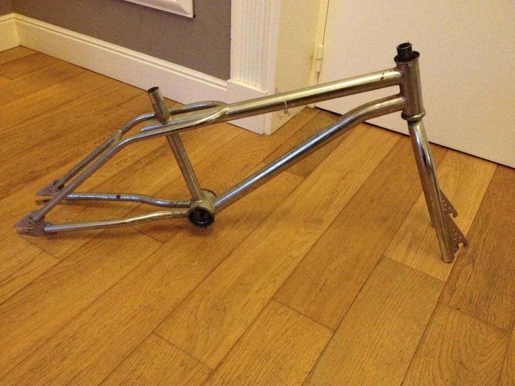 Le CF1, copie conforme (niveau du cadre) du cadre Gt perf', tout chromo avec la patte du rétropédalage, on peut donc en conclure qu'il s'agit du cadre F07 avec une cadre type Se racing free...avec des pegs.. pourquoi pas...