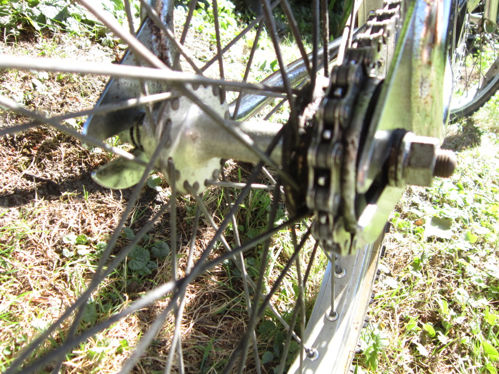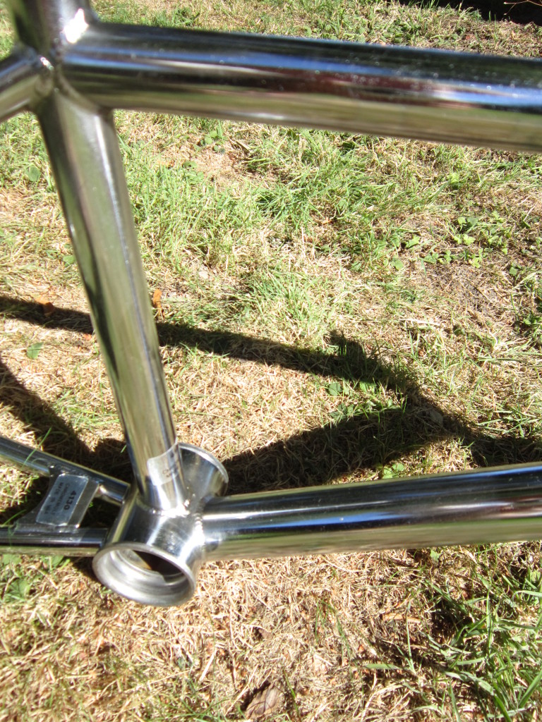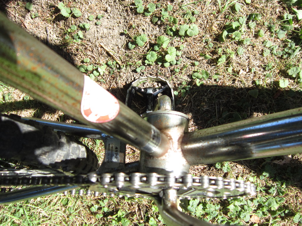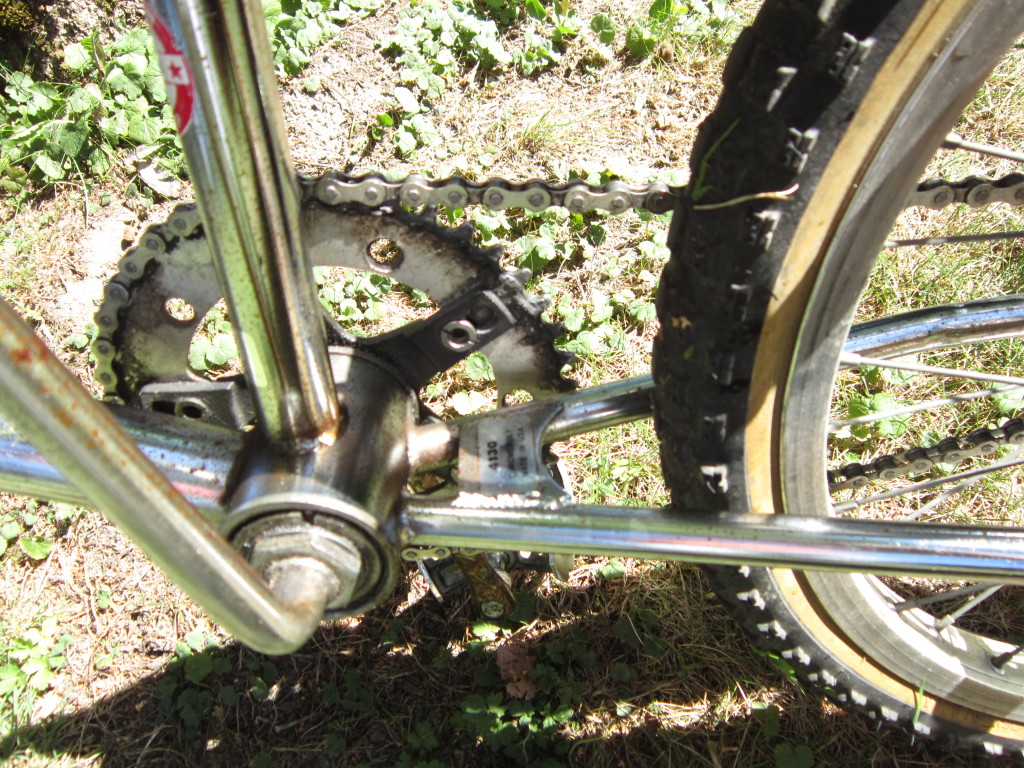 Il est comme ça depuis 30 ans,un montage avec des pièces diverses et dépareillées comme celà était d'usage à l'époque;même si j'avais jamais vu de cages Wellgo rivetées