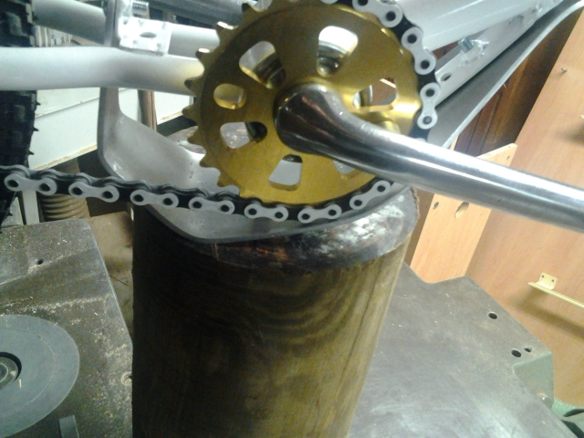 Il faudrait que tu lui trouves une fourche de vélo trial et peut-être d'autres freins, ce serait le top.