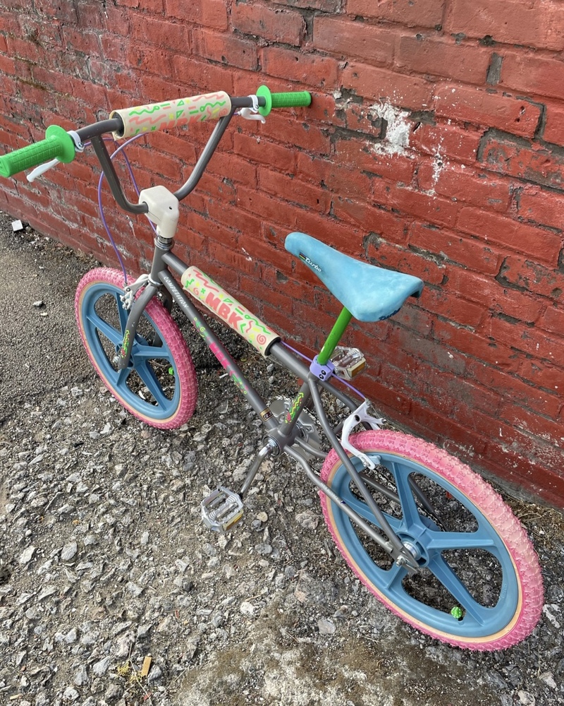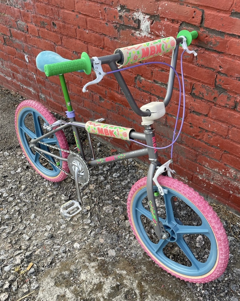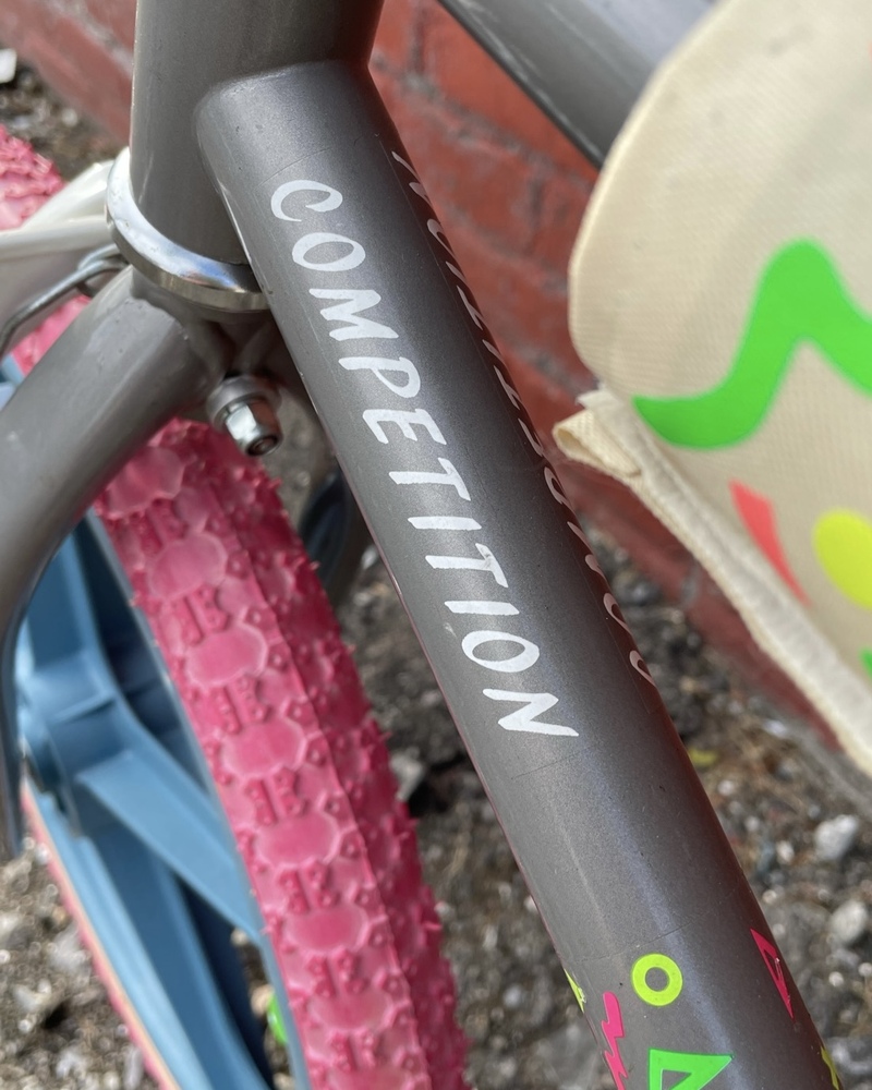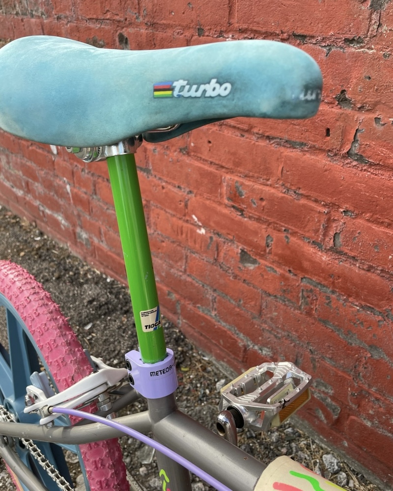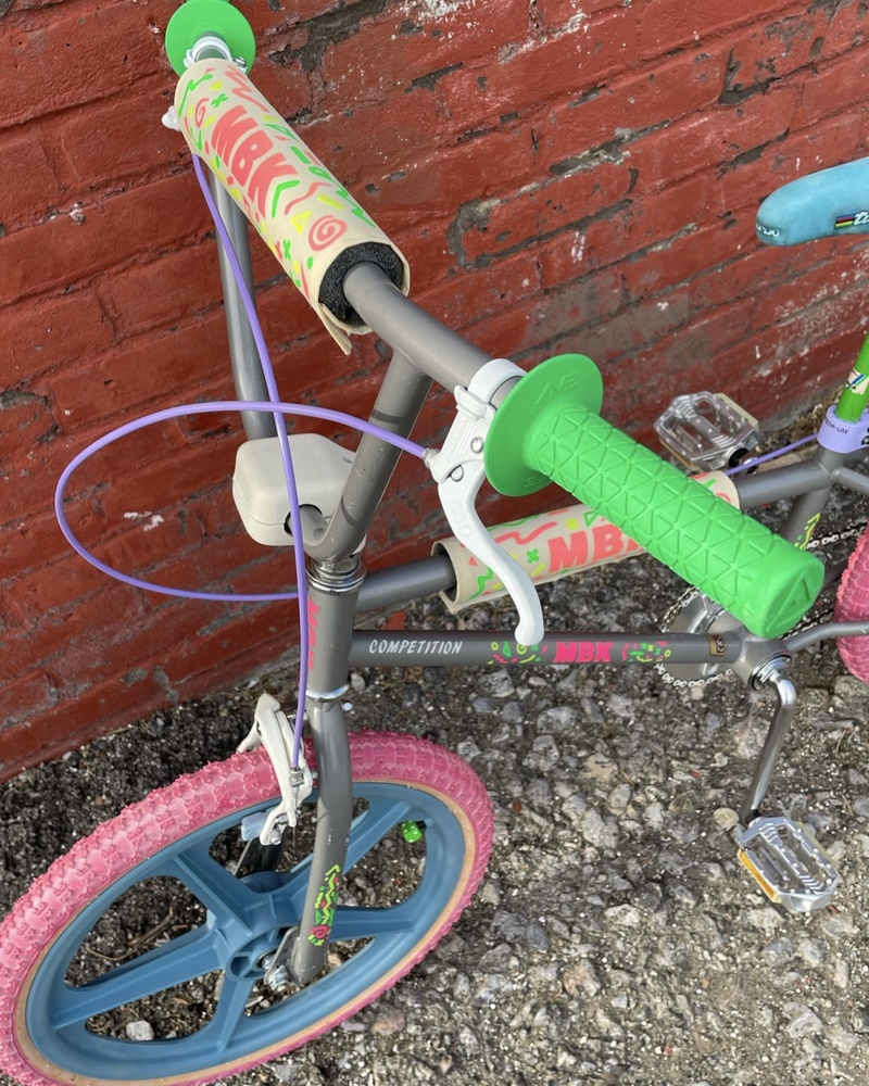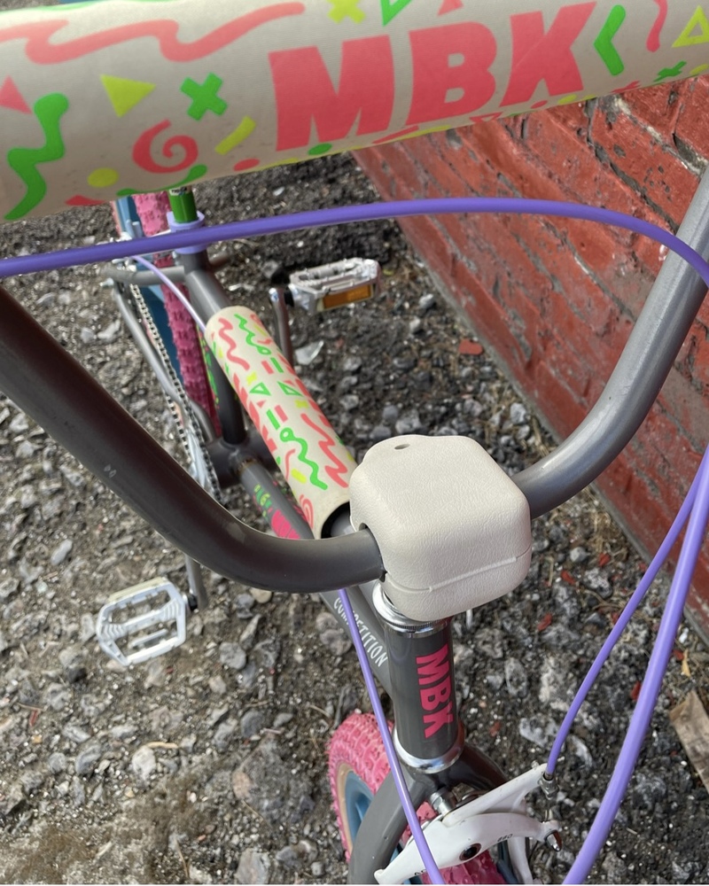 Merci, je voulais que celui-ci soit amusant. Je pense que le cadre, les fourches et le guidon gris rassemblent bien toutes les couleurs.