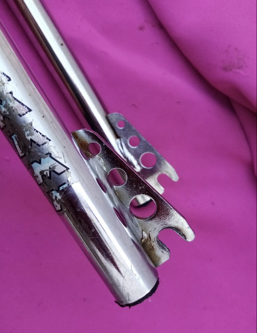 Aussi, voici une image des fourches. Je pense que le premier mx300 avait les fourches simples et les plus récents avaient la coupe inclinée au bas des jambes.