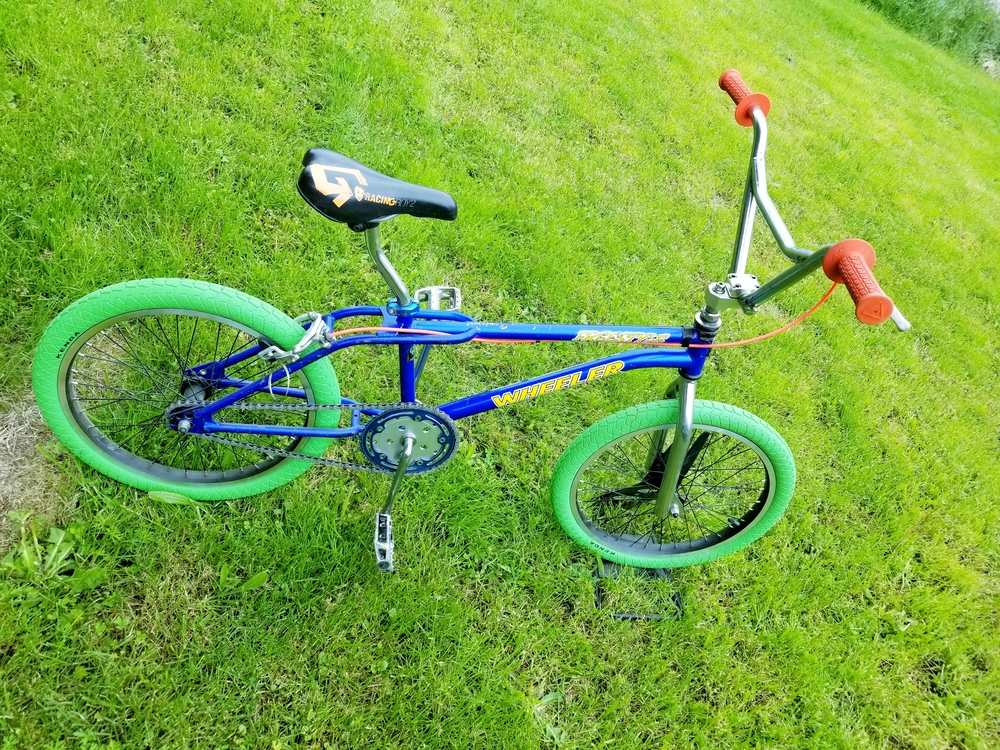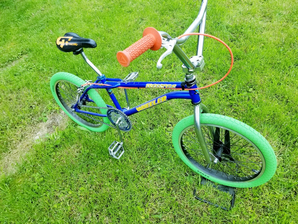 J'ai remis en etat un petit wheeler qui traînait dans mon garage depuis plus de 7 ans, remonté avec les pièces que j'avais en stock avec l'espoir d'aller faire rouler mon gamin sur les pistes de pumptrack... Pas intéressé... Pfff