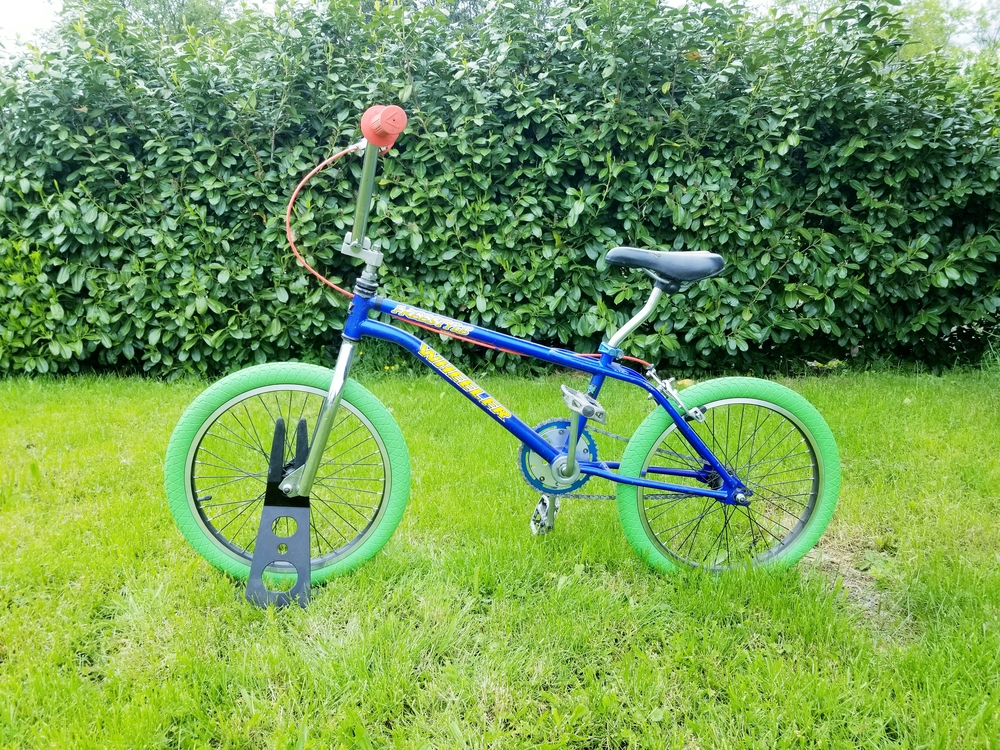 bmx 20" de 1996, marque suisse, fabrication taïwanaise et cadre full cromoly. Super léger. Apparemment fabriqué par la même usine d'où sortaient les GT.