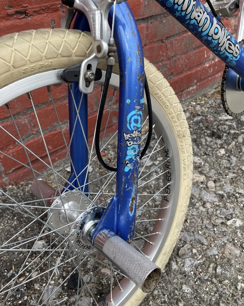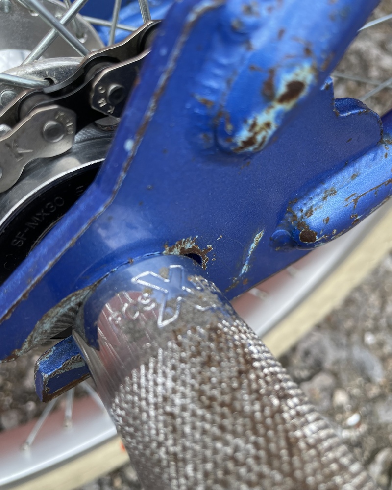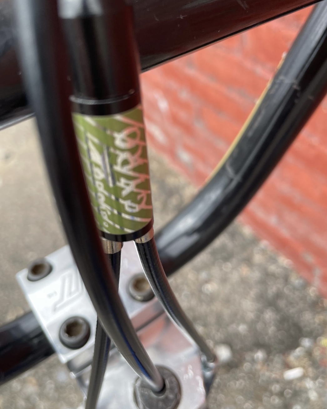 Oh oui, l'extrémité du câble en plastique est venue sur le câble. Le câble n'est pas très rigide donc je l'ai laissé. J'ai enlevé la section métallique d'une vieille tige de freestyle, cela aide à garder le câble droit à travers la tige et empêchera l'extérieur du câble de se fissurer car il ne devrait pas trop se plier.