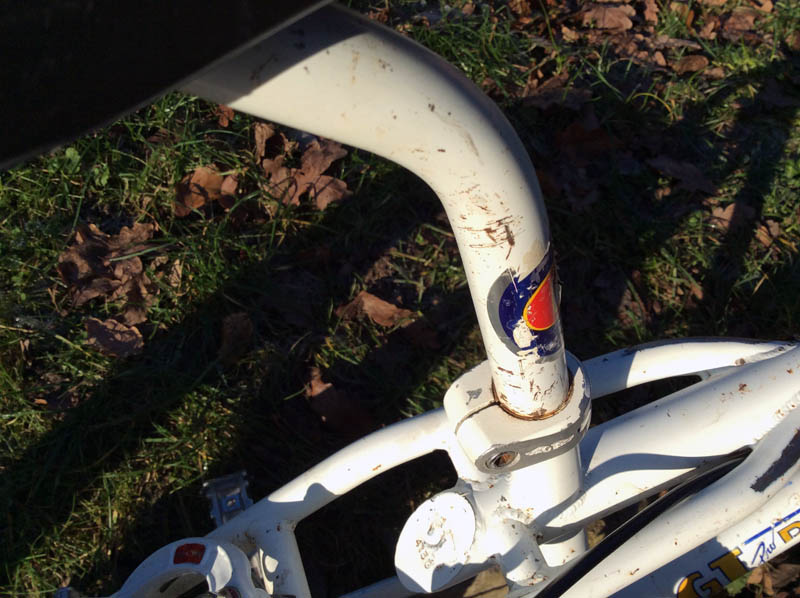 Guidon, le sticker à l'arrière. Sur la barre transversale, y a plus de sticker mais il est centré.