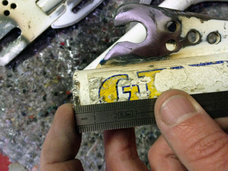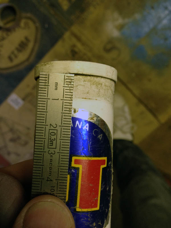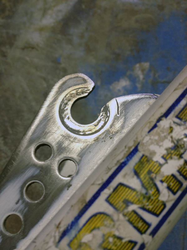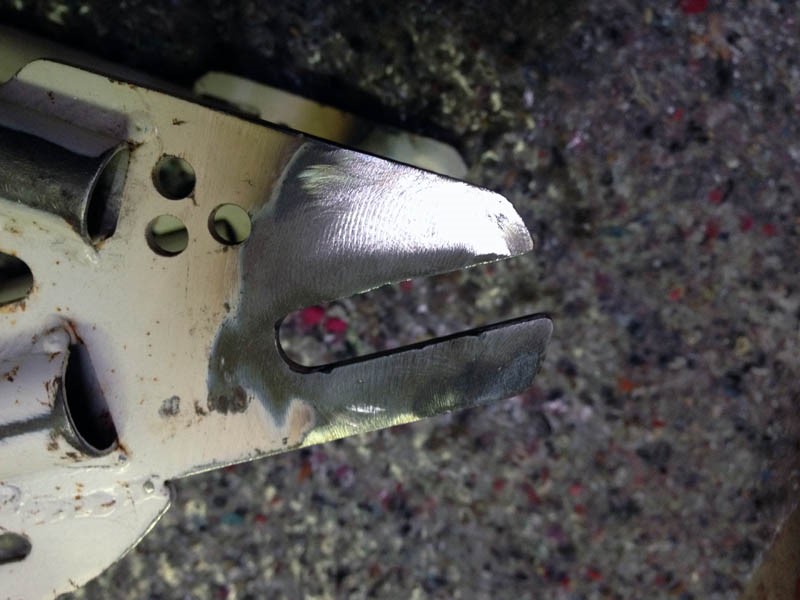 Sur la fourche, il manque 4-5 dixièmes d'épaisseur de métal (après ponçage) :