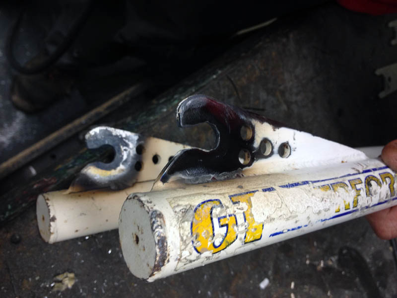 L'acier des arceaux-cages de courses étant du 25CD4S proche du 4130 cromoly, je me dis que David qui recharge en matière des blocs moteurs alu pour y passer des pistons de V8 américain, ou des culasses pour y faire "des plus gros trous dedans pour que "y a plus d'air et d'essence dans le moteur", devrait pouvoir me faire quelques cordons bien propres. 8)