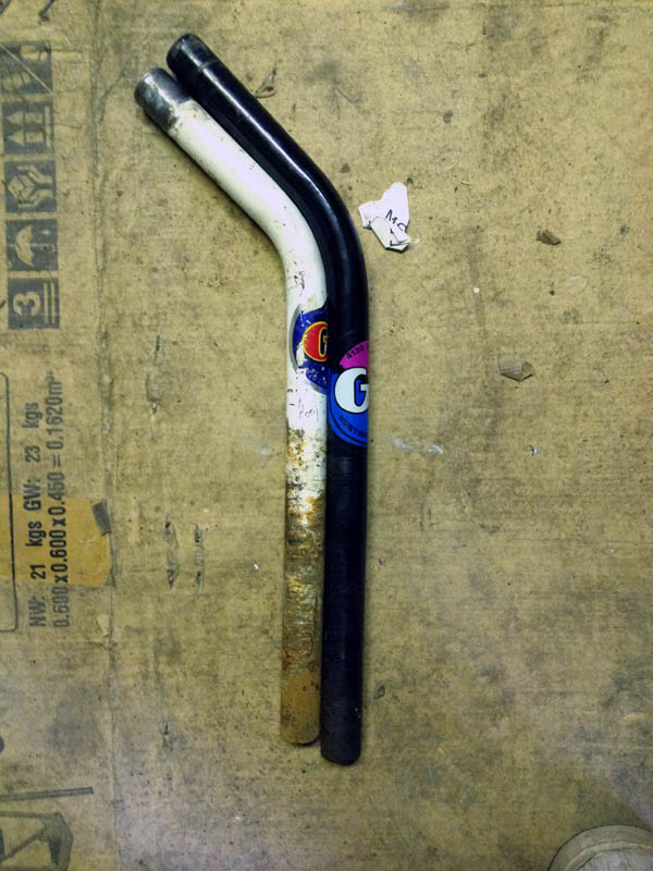 Je parlais dans un précédent post de la différence de forme entre deux tiges de selles, en l’occurrence une 1985 et une 1987 :