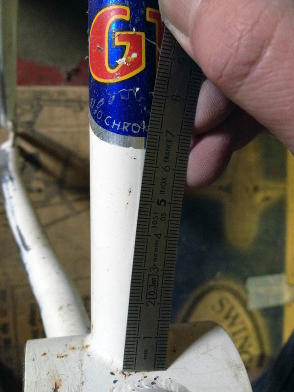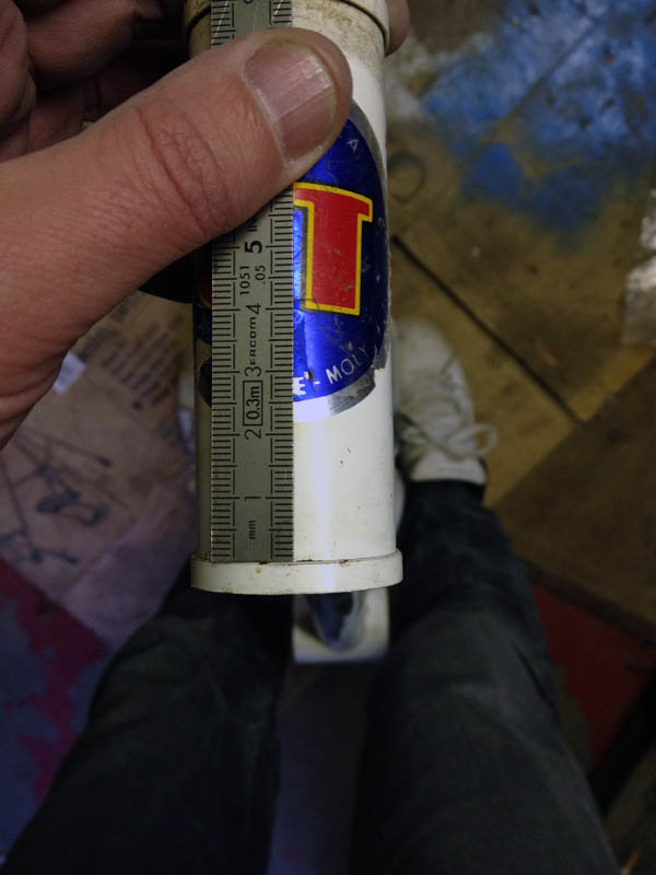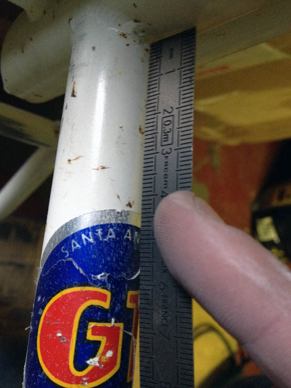 N.B. : J'ai pris la mesure depuis l'intersection du V que forment la jonction des deux tubes, seul point de géométrie remarquable (facilement, s'entends).