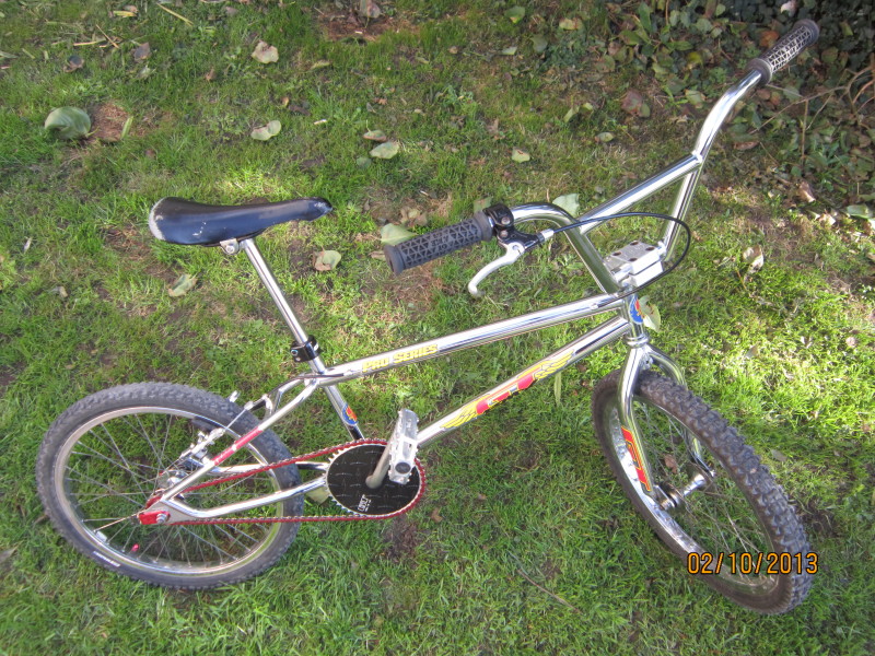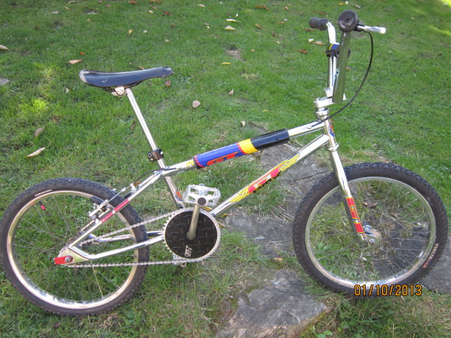 Voilà une de mes dernières trouvailles,un Gt Pro-Series Team model de Janvier 94 d'après le numéro de série,j'ai mis un plateau Gt que j'avais,un guidon GT flat(une manie?)et une KMC rouge c'est tout.j'l'ai eu pour 100 euros pense que c'est pas une mauvaise affaire car tout GT dessus(JDD et pneus meme!)J'ai rien fait d'autre à part le nettoyer,moi j'aime bien,il parait qu'il a appartenu à un champion de France dont le nom m'échappe.