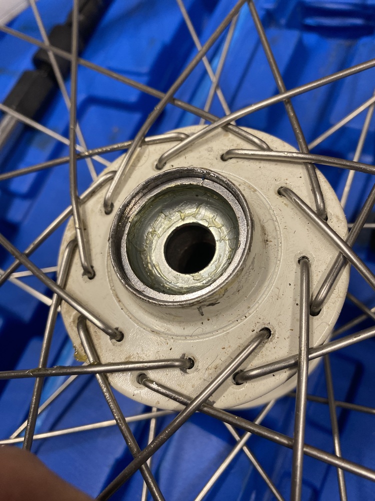 Et enfin la deuxième surprise: le moyeu avant à des sièges de roulement plus petit en 21,5mm au lieu des 25,5mm arrière d’origine.