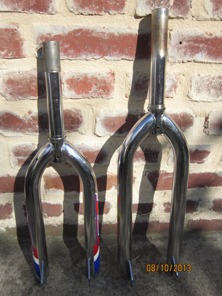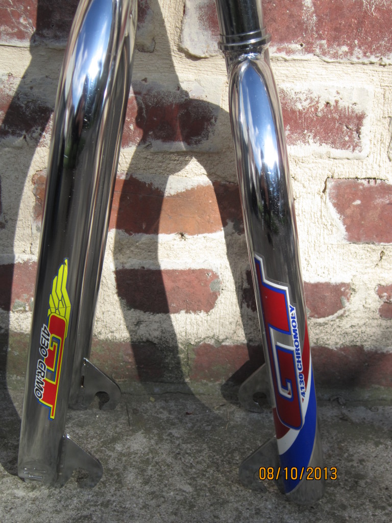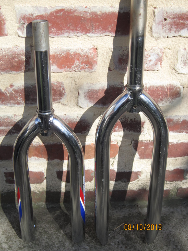 Je savais qu'il devait me rester des fourches GT seulement c'est des 28 Aheadset(1998 gravé dessus ainsi que Spinner?)J'ai 2 fourches Pro-Series en CR-MO,une 20''Pro-Serie USA et une Pro-Serie cruiser 24'' ou 26''?voir photos.Si ca interesse quelqun à l'achat ou à l'échange?